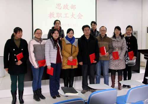 会上,思政部还为在上学期期末参加江西省思想政治理论课优秀教案征集活动中获一、二、三等奖的王诗堂等八位教师颁发了获奖证书。