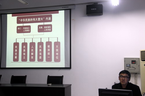 第二场学术报告题为《抗日战争与中华民族的伟大复兴》,由龚喜林博士主讲。龚喜林博士就抗日战争与“中华民族伟大复兴有利的外部条件”、“中华民族伟大复兴强大的精神动力”、“中华民族伟大复兴有利的国际环境”等方面进行了讲解,使教师们进一步了解了该课题研究的趋势。