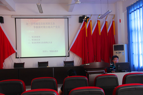 随后,教工二支部开展庆“七一”支部书记讲党课活动。支部书记邹菊如同志主持会议。邹菊如以《进一步明确党员权利和义务争做新时期合格共产党员》为题,结合自身工作,从党员的权利、党员的义务、党员权利和义务的辩证关系三方面给所属支部党员讲了一堂十分生动且有教育意义的专题党课。他强调,每个党员都应该着眼新形势新任务对党员的新要求,坚定理想信念、强化政治意识、树立清风正气、勇于担当作为,争做“四讲四有”新时期合格共产党员,在任何岗位、任何时候、任何情况下都要铭记党员身份,立足岗位,积极为党工作,凸显党员形象,以实际行动把党员的先锋形象树起来,把工作做得更好!