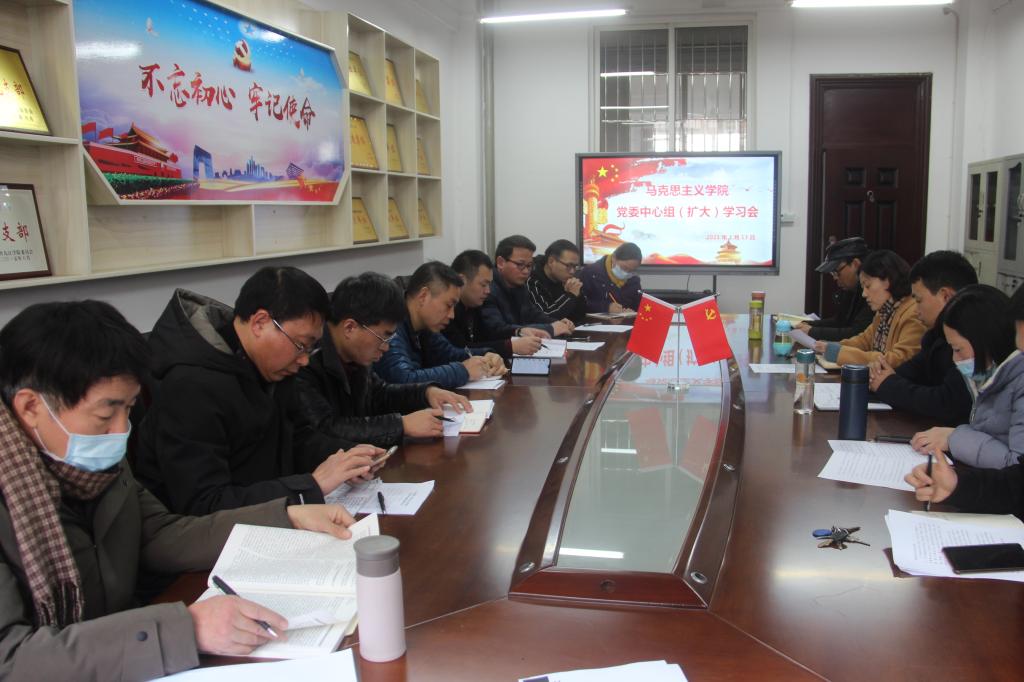 1月13日下午,yl6809永利官网集团在香远楼2052会议室召开党委中心组(扩大)学习会。会议由党委副书记李雪主持。学院党委班子成员、支部书记、各教研室主任、科室负责人参加会议。