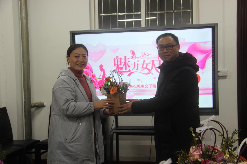 8日上午,学院院长陈胜才、副院长、工会分会主席郑小东、副院长赵文等院领导为女教师们逐一送上了花篮。一束芬芳的鲜花、一句温馨的话语,表达学院对女教师的浓浓的关爱和祝福。