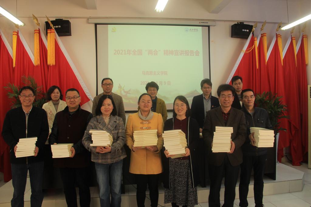 会议强调,全体教师要把学习贯彻习近平总书记重要讲话、全国两会精神作为当前的一项重大政治任务来抓紧抓实,认真学习、深刻领会,始终坚持以习近平新时代中国特色社会主义思想为指导,切实增强“四个意识”、坚定“四个自信”、做到“两个维护”。各教研室要结合教学实际,把学习贯彻全国两会精神与上好思政课相结合起来,及时推进全国两会精神进课堂,确保习近平总书记重要讲话精神和全国两会精神第一时间进教材、进课堂、进头脑,迅速掀起学习宣传、贯彻落实全国两会精神的新热潮。学院要把学习贯彻全国两会精神与党史学习教育紧密结合起来,深刻把握精神实质和精髓要义,切实把全国两会精神落到实处,进一步推进学院高质量发展,确保“十四五”开好局、起好步,描绘好新时代学院发展新画卷,以优异成绩庆祝建党一百周年。
