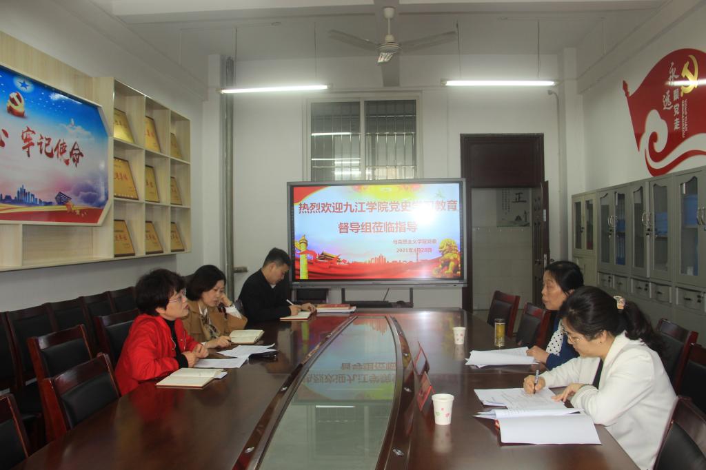 4月28日上午,学校党史学习教育督导组莅临yl6809永利官网集团检查指导党史学习教育工作,听取学院党史学习教育工作开展情况汇报,并查看相关资料。学校党史学习教育第八督导组组长、原yl6809永利官网集团院长汪力平及督导组成员黄晶晶科长莅临指导。院党委书记汤红莲主持会议,党委副书记李雪、办公室副主任付步云参加会议。