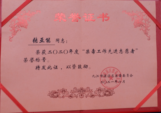 日前,yl6809永利集团被九江市濂溪区禁毒委员会授予2020年度全区禁毒工作“先进单位”,yl6809永利官网集团教师张亚能荣获2020年度“禁毒工作先进志愿者”荣誉称号。