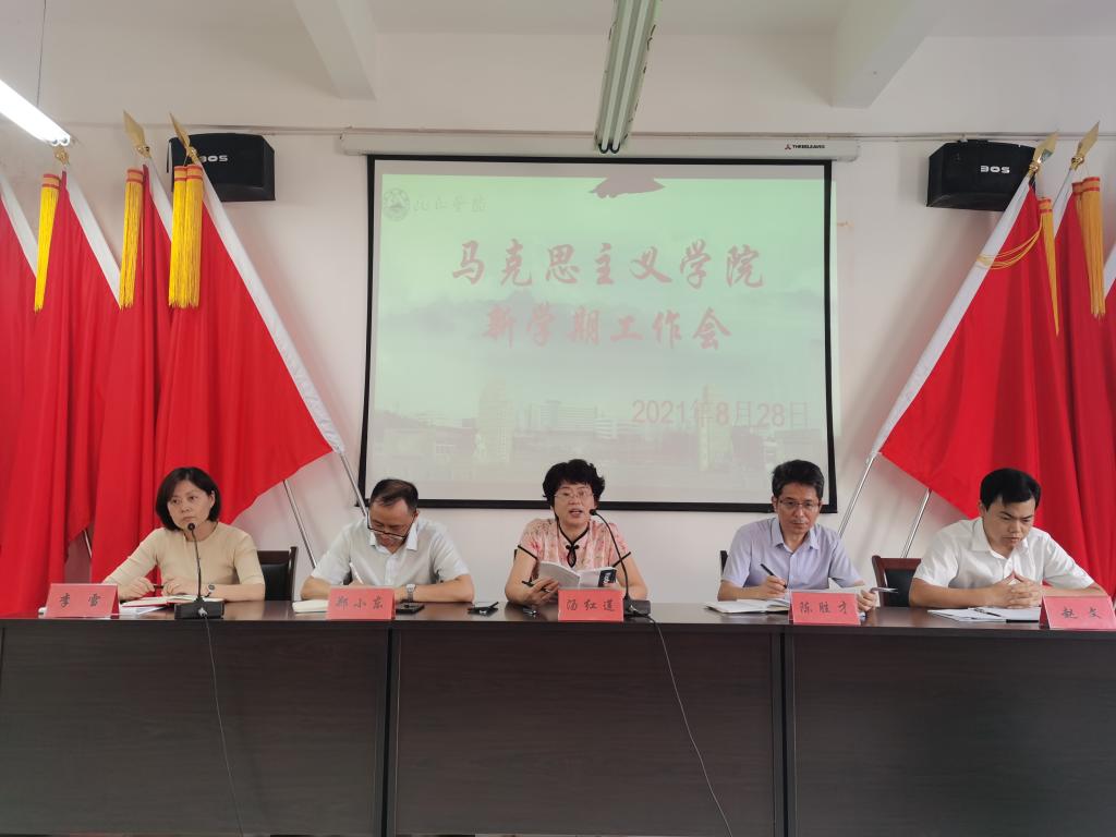 院长陈胜才向与会人员详细汇报了学院暑期各项工作情况,并提出新学期的工作要求。陈胜才说,暑假期间学院各项工作有序推进,并取得了喜人的成绩。汪力平教授、龚喜林副教授分获江西省第十九次社会科学优秀成果奖二等奖;赵文获教育部项目立项1项;王卫华获省级项目立项1项;况永贤老师的“一线课堂”微课作品荣获江西省高校思想政治课教师“一线课堂”优秀微课等。陈胜才在新学期工作部署中指出,新学期学院要全力做好以下几项重点工作:一是继续做好常态化疫情防控工作;二是扎实开展好党史学习教育、“双提高”大讨论活动;三是按照《关于深化新时代学校思想政治理论课改革创新的若干意见》持续推进思想政治理论课改革创新,不断创新教学方式、加强学术研究、凝练学术成果;全体教师要严守政治规矩、维护意识形态安全、遵守课堂教学纪律。针对新学期工作,他还对思政课教学比赛、红色文化教育馆建设、绩效考核工作等方面进行了全面部署。