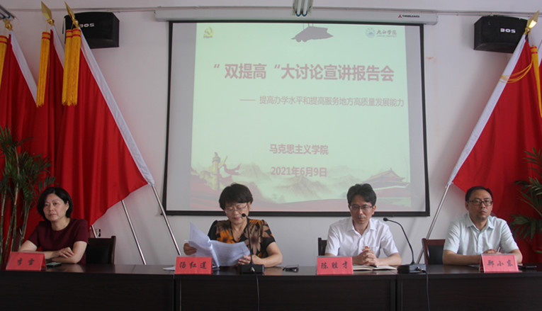 6月9日下午,yl6809永利官网集团在香远楼212会议室召开“双提高”大讨论宣讲报告会。报告会由党委书记汤红莲主持,学院领导班子成员及全体教师参加了学习。