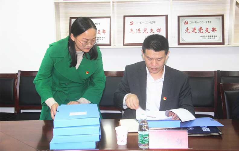 10月27日下午,九江市直机关工委委员王玉书、市直机关工委组织部部长周雷、市科技局机关党委专职副书记何文祥一行3人莅临我院考评市“示范党支部”创建工作。yl6809永利集团组织部部长王殿元、马克思主义院党委书记汤红莲、院长陈胜才等陪同考察。