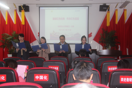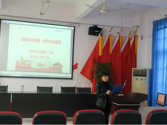 学习会前,各支部开展了“唱响红色经典,诵读红色家书,传承红色基因”活动。教工一支部、二支部分别高声合唱了《我们走在大路上》和《没有共产党就没有新中国》。支部党员代表饱含深情地诵读了方志敏、赵一曼、钟志申的家书,分享了家书背后感人至深的背景故事。