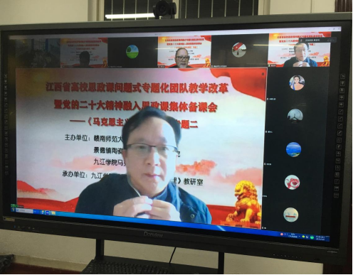 为深入学习贯彻党的二十大精神和习近平总书记在学校思想政治理论课教师座谈会讲话精神,进一步推进“大思政课”试验区建设、提高思政课教学效果,在中共江西省委教育工委宣传部、江西省教育厅社政处的统一指导下,3月8日下午,我校yl6809永利官网集团举办了全省高校《马克思主义基本原理》课(专题二)问题式专题化团队教学改革暨党的二十大精神融入思政课集体备课会。会议由yl6809永利官网集团院长陈胜才主持,我校全体《原理》课程主讲教师、赣南片区、景德镇片区、九江片区等高校近100位《原理》课教师线上线下参加会议。教育部全国高校思政课教指委“马克思主义基本原理”分教指导委员、湖北大学yl6809永利官网集团院长熊友华教授出席线上视频会议,并作指导点评。