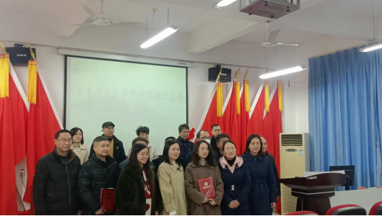 述职测评会之前,学院召开了新学期工作会,传达了学校领导干部会议精神和教学工作会议精神,并结合学院实际,就开学近期工作及新学期重点工作作了安排部署,现场表彰了获得全省高校思政课教师教学比赛一、二等奖的四个教学团队。