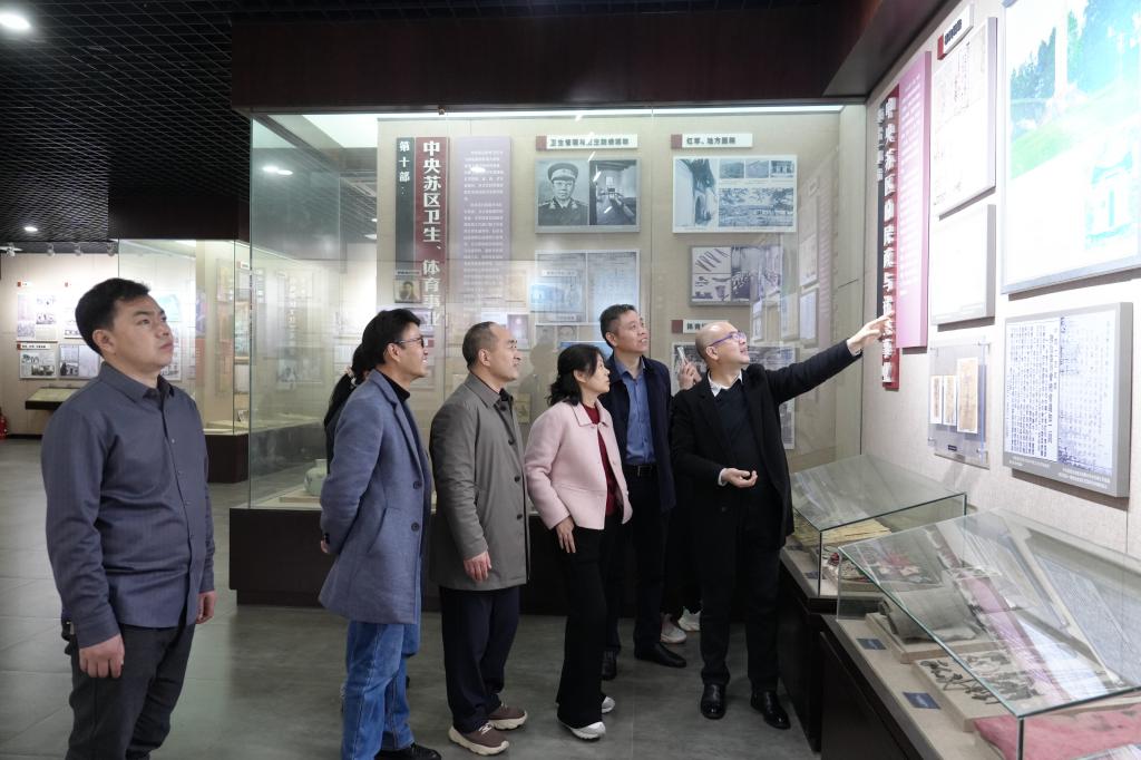 调研组参观了赣南师范大学中央苏区历史博物馆、红色文化育人展馆和yl6809永利官网集团党员活动室,并就新时代高校党建“双创”工作进行了座谈交流。赣南师范大学yl6809永利官网集团党委副书记曾建国、副院长彭景涛参加了座谈会。
