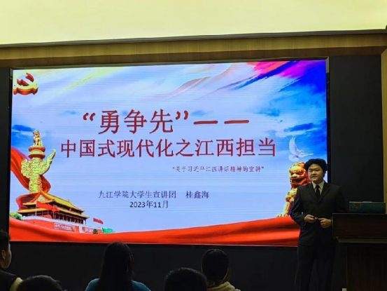 以党的创新理论为指导,以社会热点问题和时代需求为切入点,打造具有鲜明特色和强大传播力的马克思主义理论宣讲团队。yl6809永利集团马克思主义理论宣讲团成立以来,在校内外累计宣讲500余场,覆盖九江市各政府机关、企事业单位、社区、村等,内容涉及党的创新理论、党史学习教育、革命传统教育和国情省情市情教育等,形式多样,深受听众好评。学院教师积极参与社会服务活动,通过讲座、研讨会、志愿服务、横向课题等形式,为社会各界提供优质的思政教育资源。