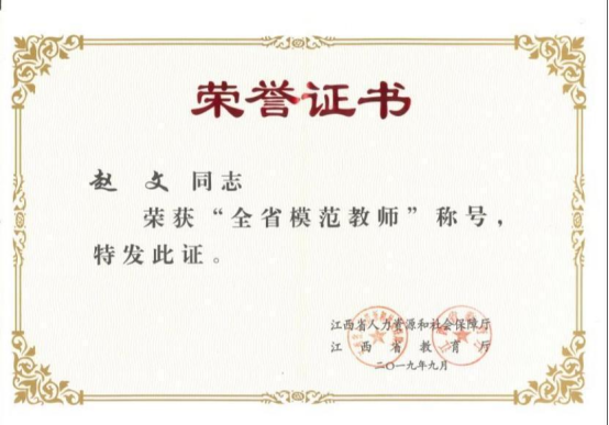 学院教师荣获“全省模范教师”称号