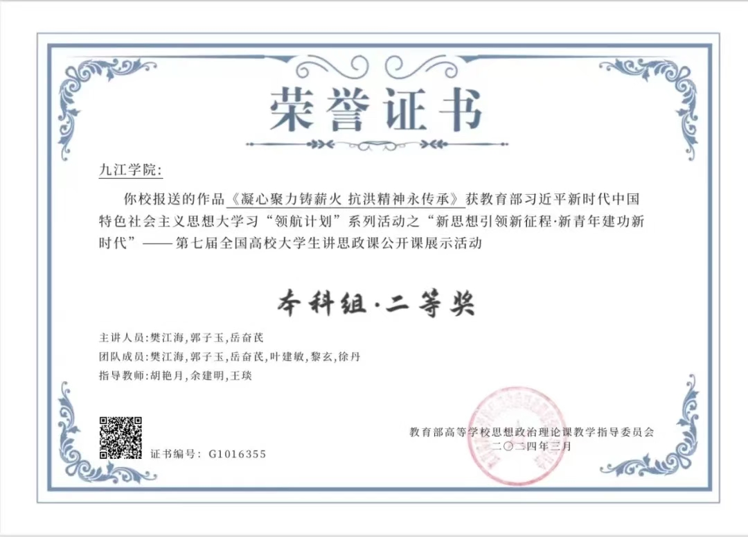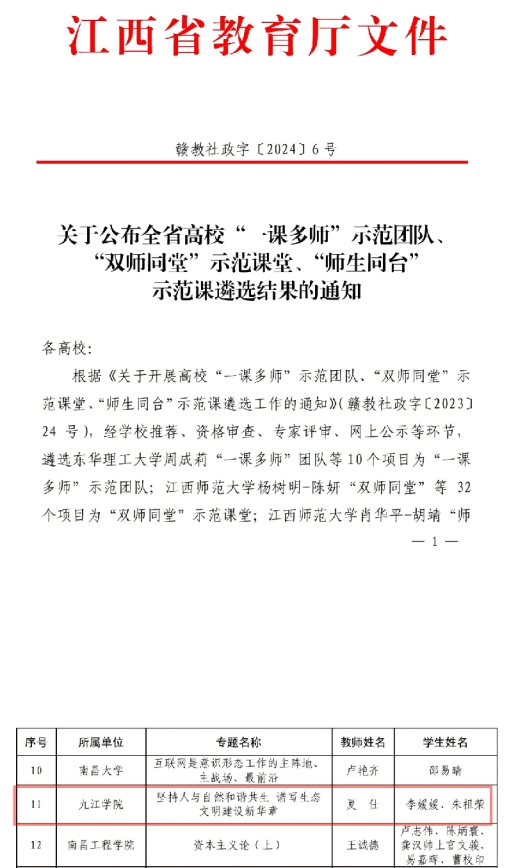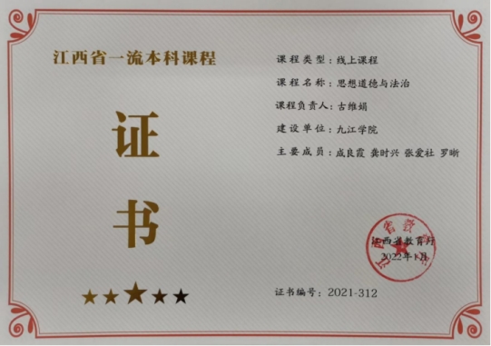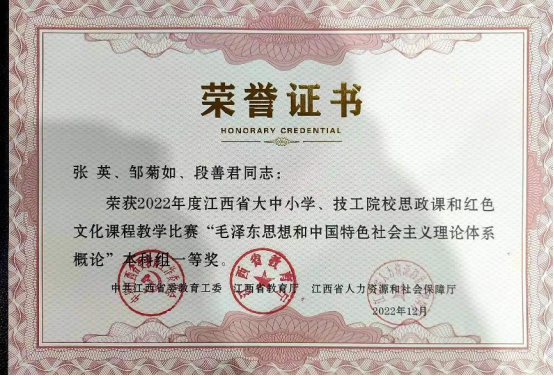 获评江西省教育厅“最美思政课”1项