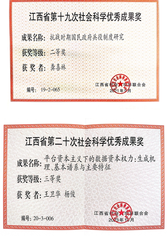 yl6809永利官网集团部分江西省社科成果奖