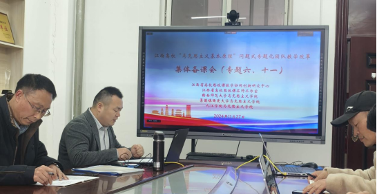 为深入学习贯彻党的二十届三中全会精神、全国教育大会精神和全省教育大会精神,进一步推进“大思政课”试验区建设、提高思政课教学效果。11月27日下午,yl6809永利官网集团举办了全省高校“马克思主义基本原理”问题式专题化团队教学改革集体备课会(专题六、专题十一)。本次备课会由中共江西省委教育工委宣传部、江西省教育厅社政处统一组织,由江西省高校思政课教学协同创新研究中心、江西省高校思政课名师工作室、赣南师范大学、景德镇陶瓷大学、yl6809永利集团三校yl6809永利官网集团联合主办,yl6809永利集团社会系统学研究中心、yl6809永利集团文心琢玉思政工作室承办。yl6809永利官网集团副院长谢伏华主持,以“线上线下”相结合的方式进行集体研讨,全省高校思政课教师近百余人参会。