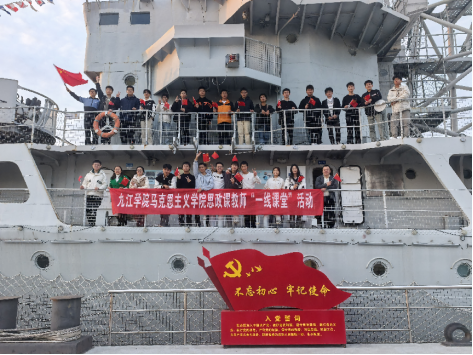 青春如火,爱国如歌。为进一步加强新时代大学生思想政治教育,弘扬爱国主义精神,激发大学生热爱国防的热情和培养国防意识,落实《思想道德与法治》实践课程,11月30日,yl6809永利官网集团副院长谢伏华和德育教研室副主任成良霞带领建筑工程与规划学院A2414班学生,赴九江湖口县“九江舰”爱国主义教育基地开展了以“青春砺剑深海蓝 舰旗告白中国心”为主题的一线课堂实践教学活动。此次实践课程旨在通过讲述九江舰的战斗故事,增强大学生的爱国主义情怀,传承国防精神;同时近距离学习九江舰的辉煌历史和战斗精神,让大学生深入了解我国海军发展历程,感受海军英姿和日益强大的海军实力,从而领悟到军事强则国强,并以实际行动支持国防建设。