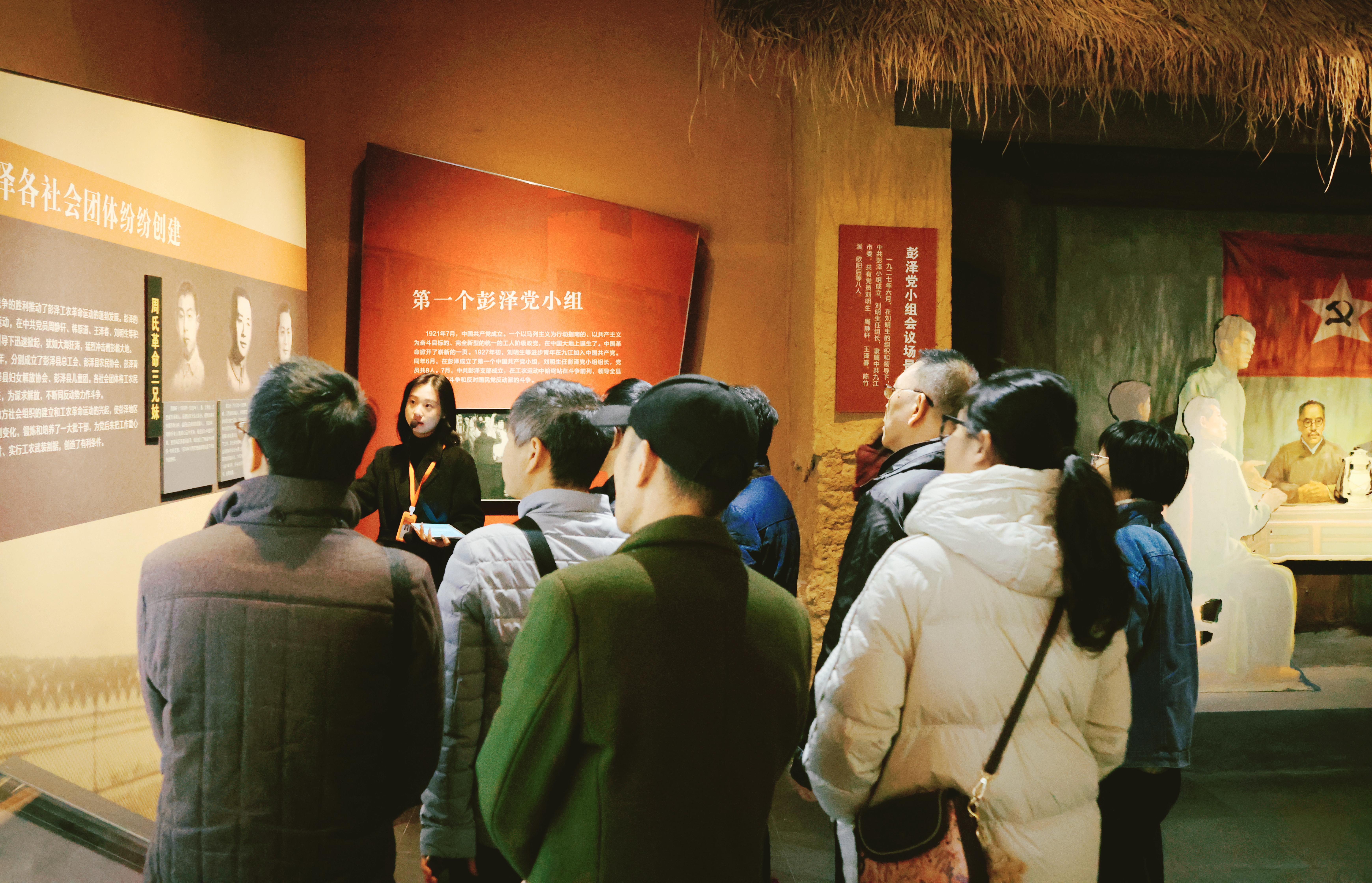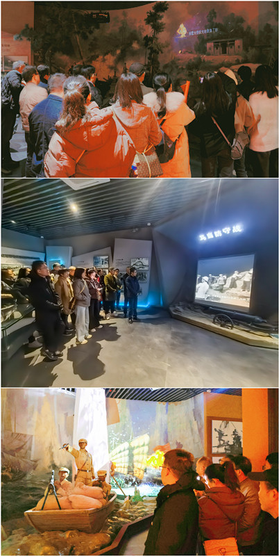 活动第一站,大家一起来到彭泽县红色文化展示中心参观学习。彭泽县红色文化展示中心陈列着百余年来彭泽县革命斗争和社会主义建设的众多实物与照片史料,共分为七个板块:包括序厅、尾厅和五个主要展区。参观学习中,大家跟随讲解员吴思雨老师的步伐,看史料、听讲解、观视频。一张张珍贵的历史照片、一份份翔实的档案资料、一段段逼真的复原场景,让大家深刻了解到彭泽县党组织从建立、发展至壮大的艰辛历程,知晓了革命先烈浴血奋战、勇于牺牲、“三进彭泽”的伟大壮举。寥寥数语,道不尽战争的残酷。柳墅大捷、马当防守战、渡江战役等革命斗争事迹的场景将大家带回到了当年的战场,一起感受了那段光辉的战斗岁月。