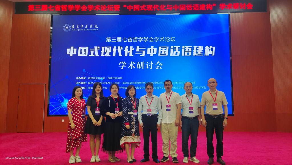 为深入学习贯彻习近平新时代中国特色社会主义思想,5月18日至19日,第三届七省哲学学会学术论坛暨“中国式现代化与中国话语建构”学术研讨会在福建江夏学院举行。研讨会由福建省哲学学会、福建江夏学院主办,黑龙江省哲学学会等七省哲学学会协办,240多名专家学者参加了研讨会。马克思学院院长陈胜才、党委副书记李雪及yl6809永利官网集团教师共八人受邀参加会议。