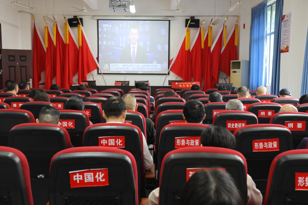 会上,全体教职工集中收看、学习习近平总书记在二十届中央纪委三次全会上的重要讲话视频,观看警示教育专题片《一体推进“三不腐”》第一集《永不停歇》,副院长郑小东传达了十五届省纪委四次全会精神,副院长赵文传达了2024年全省教育系统全面从严治党工作会议精神,党委副书记李雪传达了学校2024年度全面从严治党工作会议精神。