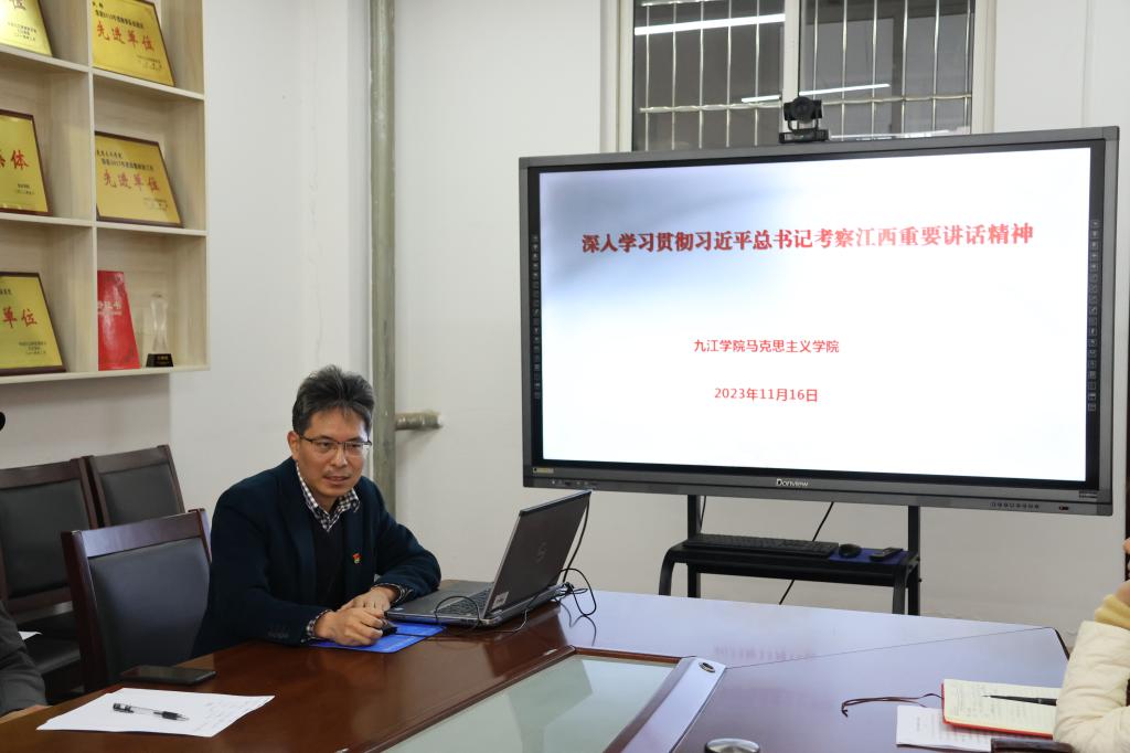 会上,与会人员集中观看习近平总书记考察江西时的视频,重温总书记在江西考察的足迹。党委书记汤红莲传达学习习近平总书记在江西考察时的重要讲话精神,院长陈胜才围绕习近平总书记在江西考察时的重要讲话精神作专题辅导报告,副院长赵文领学习近平总书记在中共中央政治局第九次集体学习时的重要讲话精神,副院长郑小东领学习近平总书记重要文章:开辟马克思主义中国化时代化新境界。