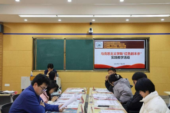 红色剧本杀以中国共产党党史、中国近现代革命历史中的事件为原型,选取历史意义重大、情节冲突激烈的事件改编成剧本进行演绎,将红色基因融入到剧本杀中,参与者通过扮演红色剧本中的不同人物,实现与中国共产党的革命先辈们的隔空对话,以沉浸式戏剧体验的方式,在剧情演绎的过程中汲取知识和力量。在香远楼417多功能智慧课堂,这场时长3小时的“沉浸式体验”和“跨时空对话”,同学们通过阅读剧本、讲述辩论、剧情演绎、沉浸思考等环节,亲身体验了解放战争中的一段历史故事。