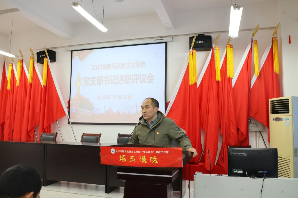 会上,刘红雨、谢伏华、段善君三位党支部书记围绕落实党支部党建工作责任、完成学校、学院党委各项工作部署、推进支部“三化”建设和个人履职情况等方面进行了详细汇报,总结了2023年度支部取得的成绩,对支部目前存在的不足分析了原因并提出了整改措施和今后的努力方向。