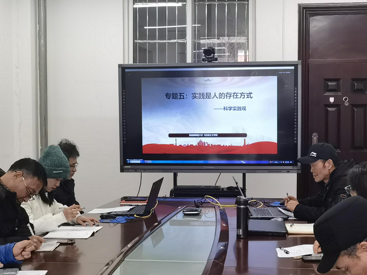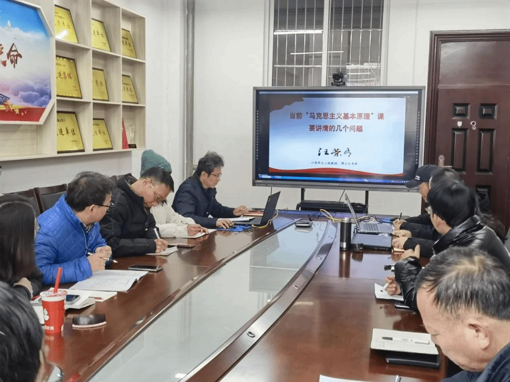 集体备课会包括专家导学、示范教学、专题设计和问题链汇报以及集体研讨等环节。专家导学由国务院特殊津贴专家、江西师范大学博士生导师、南昌工程学院原副校长汪荣有教授讲授。汪荣有教授就《当前“马克思主义基本原理”课要讲清的几个问题》进行了阐释,主要内容有“讲清马克思主义基本原理与二十大精神的内在逻辑关系”、“讲清‘两个结合’与马克思主义基本原理中国化时代化及理论创新”、“讲清‘人类文明新形态’是社会形态理论新时代的最新概括”等问题。汪荣有教授非常关注中国特色社会主义新时代中社会发生的新变化、新问题,为运用马克思主义基本原理分析新时代新问题做了精彩的导学。
