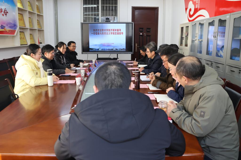 12月25日上午,贺州学院督导齐新林教授一行4人来yl6809永利官网集团调研。yl6809永利官网集团院长陈胜才教授、副院长郑小东副教授,以及各教研室主任参加,双方在香远楼2052会议室就思想政治理论课教学改革进行座谈。