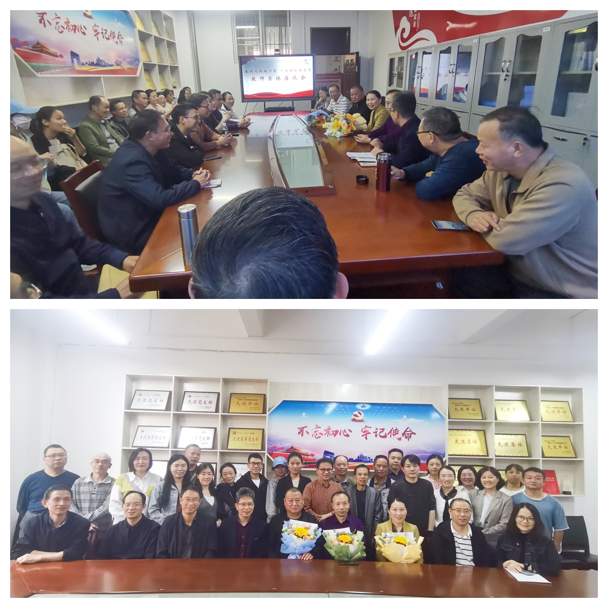 终生育桃李,回首皆芳华。退休教师深情回忆了自己从教以来的万千往事,感慨颇多。言谈中透露出几十年来他们用知识的甘露滋润着学生的⼼田;用奉献的热血承传着⼈类的文明;用无悔的青春演绎着诗意的⼈生,饱含了他们对教育事业的无限忠诚与不舍,蕴含了他们对学校发展的无限期望与赞许。