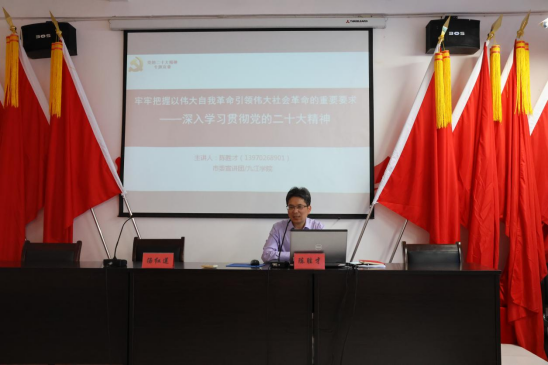 培训会前,学院党委委员、院长陈胜才以《牢牢把握以伟大自我革命引领伟大社会革命的重要要求——深入学习贯彻党的二十大精神》为题为全院教师讲授专题党课。