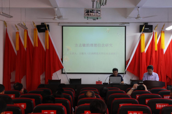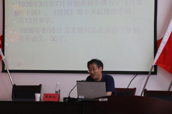 培训会上,万振凡教授以《方志敏的理想信念研究》为题做了专题讲座。万教授从方志敏崇高理想信念的形成与确立、方志敏理想信念的内涵、方志敏理想信念所孕化的精神风貌、方志敏坚守理想信念的机制、方志敏理想信念传承与弘扬等方面给学院全体教师系统讲授了他对方志敏烈士理想信念的研究,以一个个感人的故事、生动凝练的语言、翔实的史料,让全体思政课教师接受了一次触及灵魂的思想洗礼。