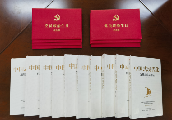 本次党员“政治生日”分三个环节进行:一是赠送一份政治“生日礼物”和“生日贺卡”。教工二支部强化打造学习型和创新型党组织,精选《中国式现代化:发展战略与路径》一书赠送给过“政治生日”的党员同志。本书紧贴时代会议精神,全面解读中国式现代化;国家高端智库首席专家蔡昉领衔之作;读懂中国发展路径,为党员同志教学与科研提供有益借鉴。二是回顾一次在党历程。支部党员余建明、廖晓峰、陆正新、何新春等回顾入党后的变化和发展,如从古老的电台,到现在的智能手机;从丑陋的土房子,到现在的高楼大厦;从反复缝补的旧衣服,到现在的西装革履……,深刻感受到在中国共产党的带领下,生活越来越美好。三是重温一次入党誓词。“我志愿加入中国共产党,拥护党的纲领,遵守党的章程……”铿锵坚定的誓词让所有人内心澎湃,一字一句神圣而豪迈,激励着党员不忘初心,砥砺前行!
