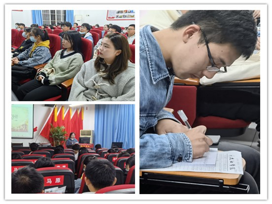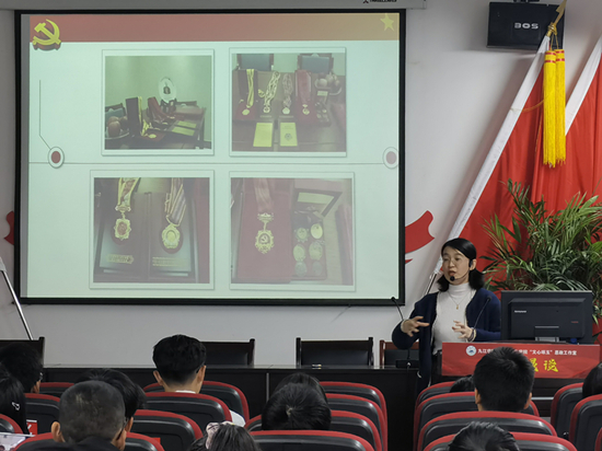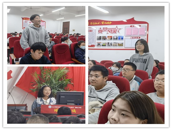 徐丹老师为同学们讲起了“红色访谈”活动的起源、革命英雄江琳同志采访过程、老英雄的英雄事迹和老英雄的英雄品格等方面内容,并着重阐释了江琳老英雄在采访最后对当代的青年大学生的殷切期盼——“一定要学好马列主义,要全心全意为人民服务,做人民的牛马,做人民的奴隶”。 学生代表文传学院2020级王彩玉表示,“我的14岁还在读初中,在享受美好的校园生活,而江琳爷爷他们的14岁就已经需要在战场上拼搏厮杀了。是他们用自己的双手创造出了当今这样一个盛世,我们要永远怀着一颗感恩之心,感谢这些英雄的无私奉献。”学生代表文传学院2020级陶梦霞表示“从老英雄江琳身上,我们看到的是当年身先士卒,屡立战功的身影和耄耋之年坚守本色,不断学习的初心。我们要接过老英雄们的接力棒,继续发挥优良传统,为中国特色社会主义建设聚起正能量!”