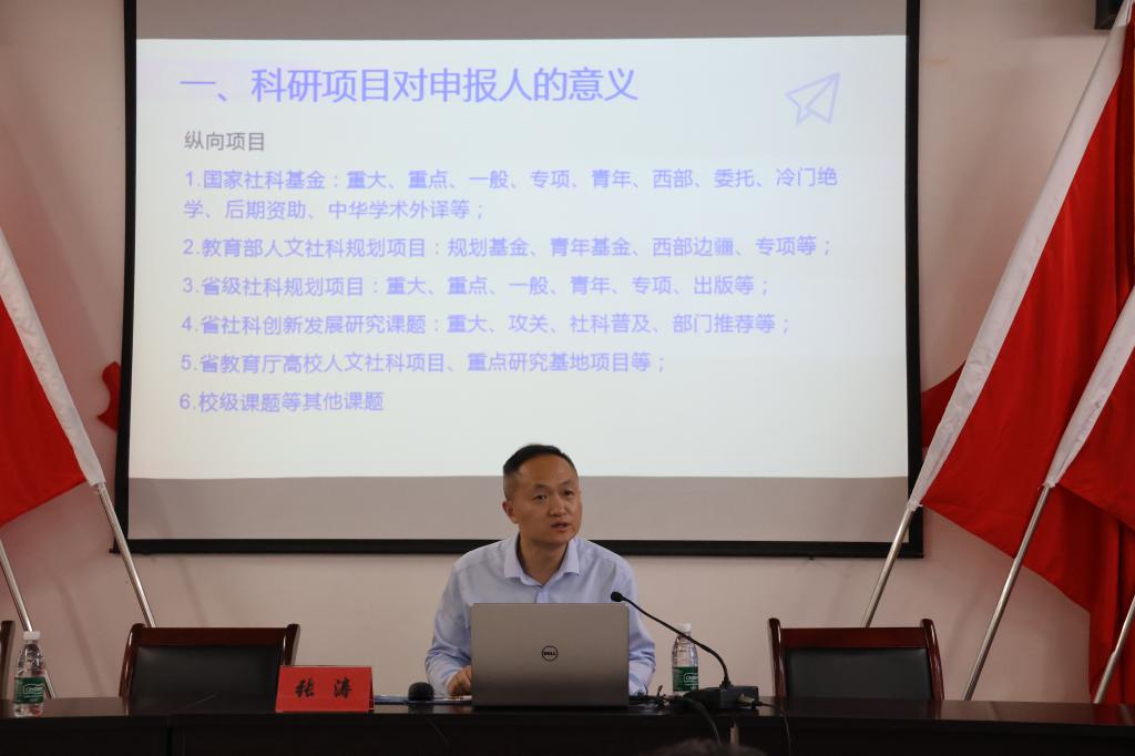 论坛的第二阶段,邀请了安徽师范大学yl6809永利官网集团副教授张涛博士为yl6809永利官网集团教师作专题讲座。张涛博士是安徽师范大学硕士生导师,安徽省伦理学会副秘书长,主持国家社科基金2项,在《马克思主义研究》《哲学动态》《北京师范大学学报(社会科学版)》等学术期刊发表论文30余篇,出版专著《海德格尔存在论与马克思主义》,古体诗集《花津四时咏》。曾获第四届长三角高校思政课教学比赛二等奖、首届全国高校形势与政策课教学骨干奖、安徽省第四届普通高校青年教师教学竞赛一等奖等荣誉多项。张涛博士围绕“科研项目申报书的撰写”进行了专题分享,重点讲解了国家社会科学基金项目申报的具体要求与评价指标,指出课题申报重点是选题,要将个人所长和国家所需相结合,深入结合中国式现代化进程,体现独有的学术价值和应用价值。