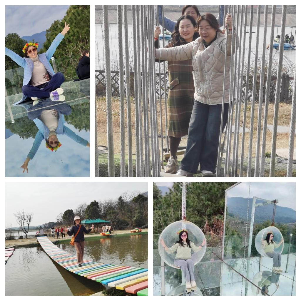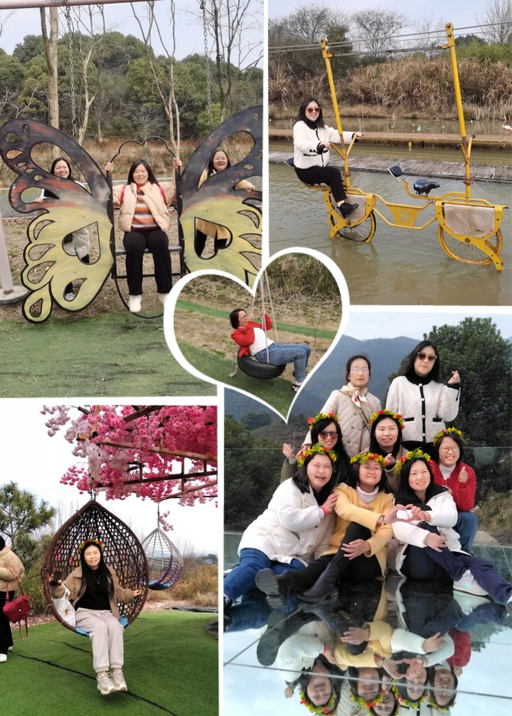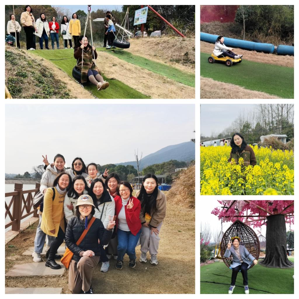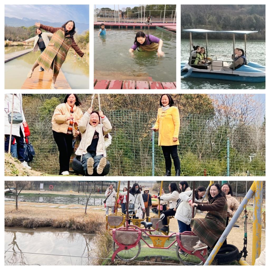 湖水清浅映山眠,三月春光微风熏。在一阵阵欢声笑语中,户外团建活动在山水忆恋休闲生态园拉开了序幕。在这里,女教师们三五结伴而行,有的聚坐在湖边的凉亭,谈生活、谈工作,畅所欲言;有的漫步于园区,欣赏着春的美色,享受着大自然带来的熏陶;有的游玩于园区的各个地方,享受着娱乐项目带来的刺激与放松。三月春风拂过,带走了汗水和疲惫,心情也如眼前的美景一般格外舒畅。女教师们一起合影,拍照打卡,记录下这难忘的瞬间,一张张灿烂笑颜展现出我院女教师们积极向上的精神风貌。