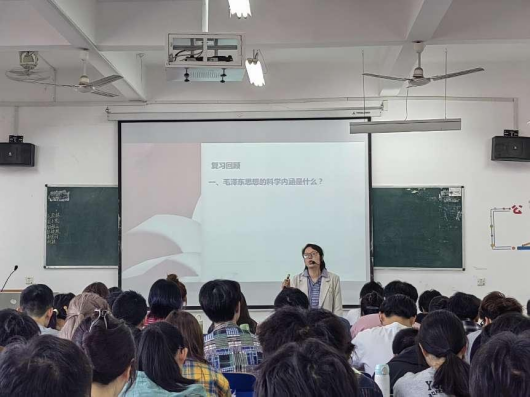 郑玉丽老师课前五分钟分享了3月20日搭载探月工程四期鹊桥二号中继星的长征八号遥三运载火箭在中国文昌航天发射场点火升空的新闻并进行了点评。随后郑玉丽老师对同学们的新闻进行总结,之后就正式进入课程教学环节。首先帮助同学们回顾了上节课内容,然后导入这节课的主题:毛泽东思想活的灵魂:实事求是,群众路线和独立自主。用精美的课件展示出课程的内容,用案例教学讲解了实事求是,用主题讨论讲解了群众路线,用视频的方式讲解了科技强国的实现离不开独立自主,首尾呼应。充分体现出郑玉丽老师授课形式多样,讲解思路清晰,逻辑性强,态度认真,并在课堂上使用了学习通,极大地调动了学生的积极性和主动性。