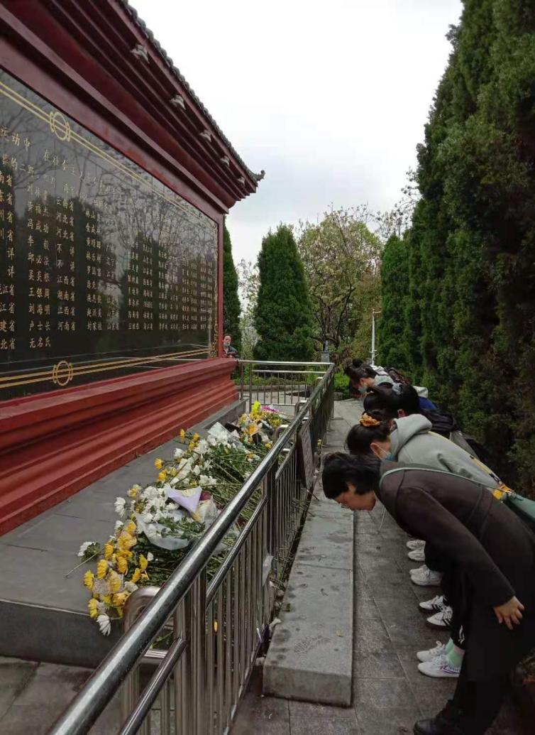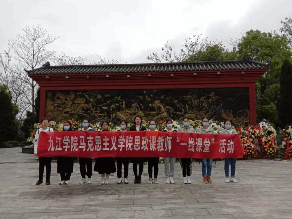 青山埋忠骨,山河念英魂。为了更好地弘扬红色文化,使党史教育深入人心,落实省委工委、教育厅开展的思政课教师“一线课堂”活动,在2021年4月4日清明节当天,yl6809永利官网集团中国近现代史纲要教研室徐丹老师带领文传学院A2022班的十名大学生去九江烈士陵园缅怀先烈,致敬英雄。