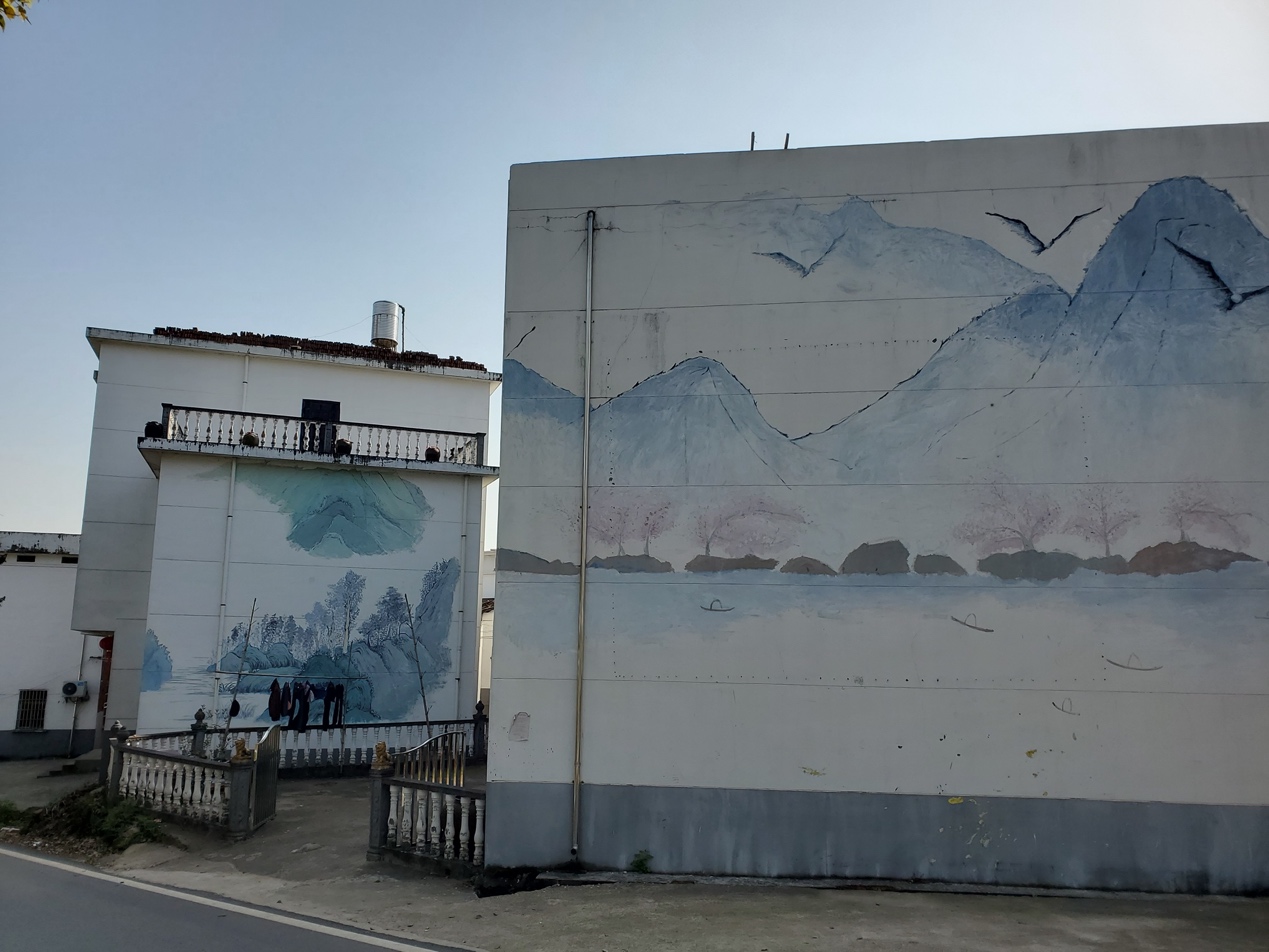 一到达玉京村,美景便映入眼帘,白色房屋上的山水画与远处的庐山美景交织相映,令人神醉。这种风貌使人很难将如今这个全国文明村与前几年的贫困村联系起来。