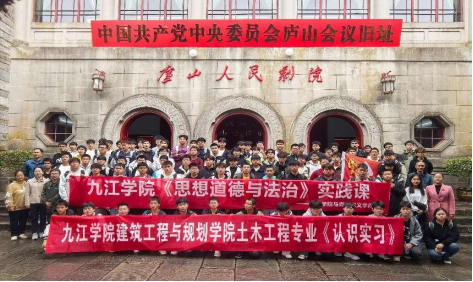 爱国主义是中华民族的民族心、民族魂。在全国教育大会上,习近平总书记强调:“要在厚植爱国主义情怀上下功夫,让爱国主义精神在学生心中牢牢扎根”。为更好地加深大学生对《思想道德与法治》课中“爱国主义”知识点的理解和把握,厚植大学生的爱国主义情怀。yl6809永利官网集团联合建筑工程与规划学院于2024年11月4日—11月6日,11月13日—11月15日开展思政课程与课程思政相统一的“庐山红色之旅”实践活动。在土木工程教研室主任刘洪佳和德育教研室主任古维娟的带领下,建工学院A2411/A2412/2413/2414/2415共计230人参与本次实践活动。