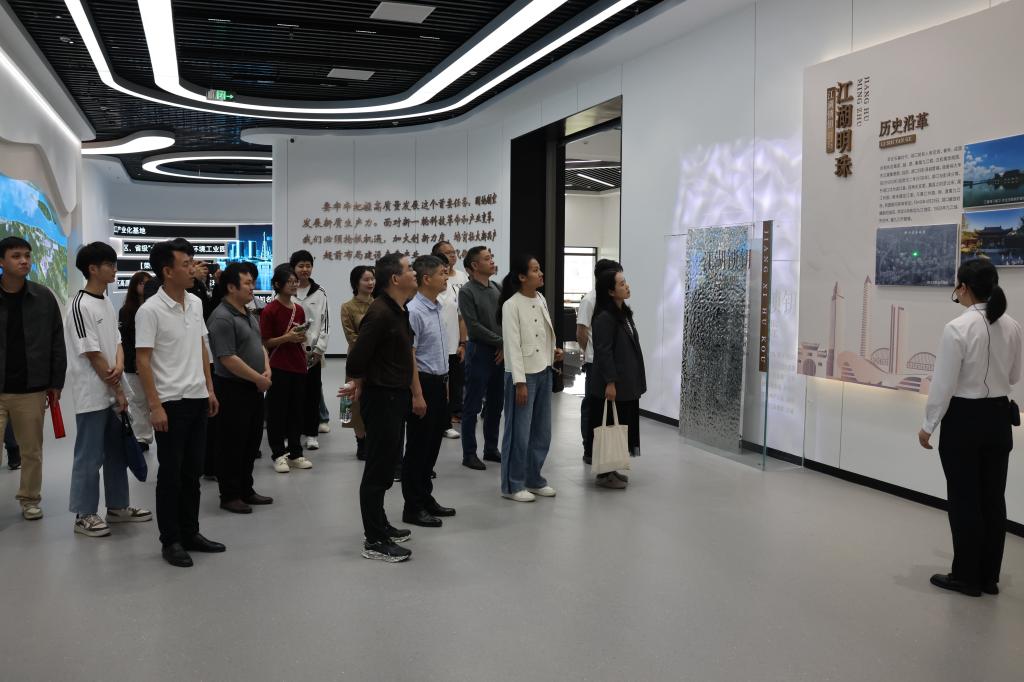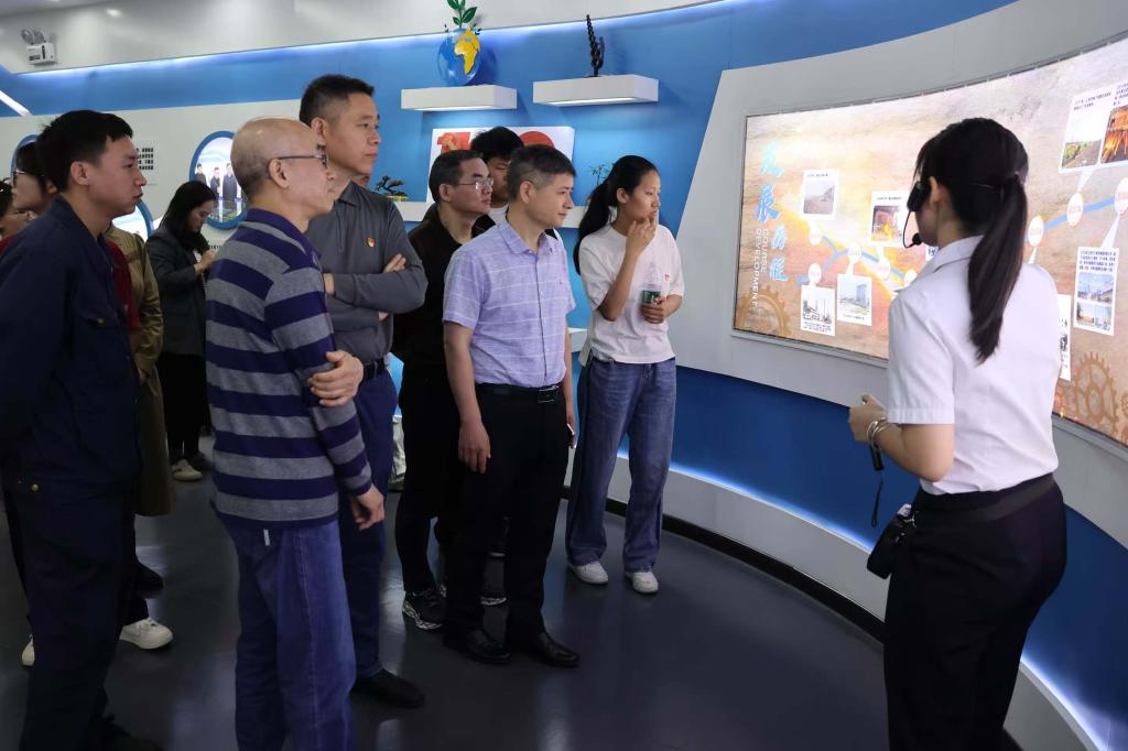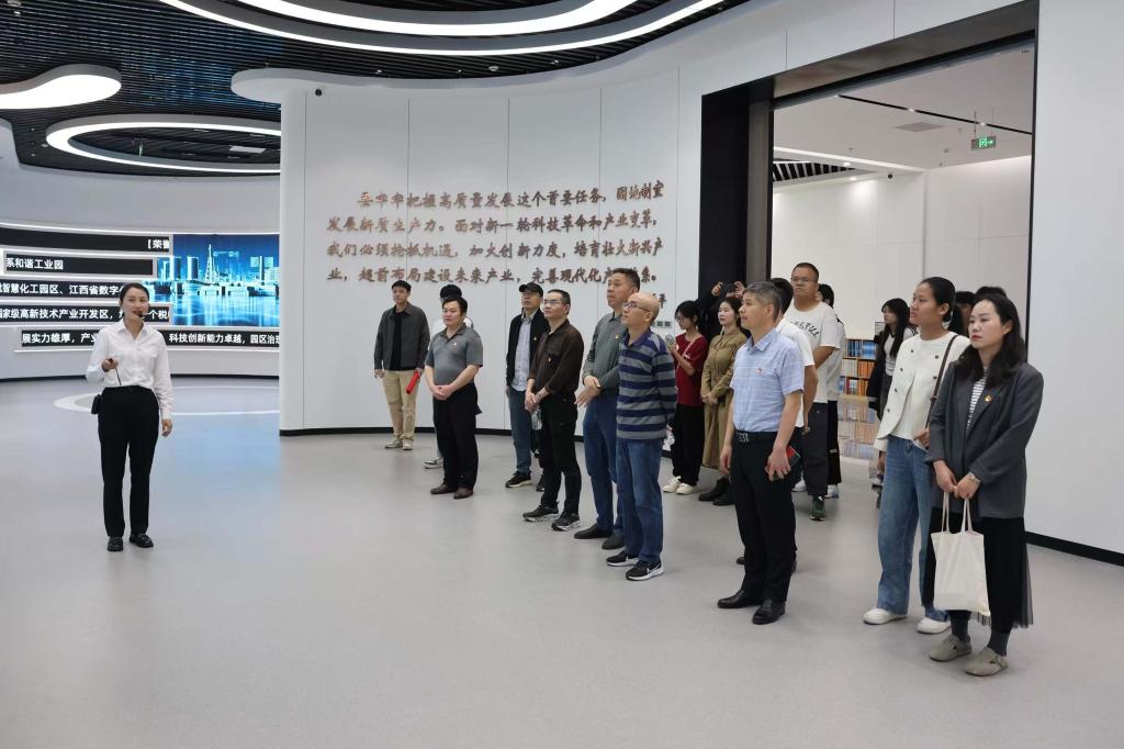 感知千亿园区速度。活动首站,党员教师走进湖口高新技术开发区工业展厅,沉浸式感受区域产业发展的蓬勃活力。展厅以图文展板、沙盘模型及数字化影像展现园区从起步建设到产业集群崛起的奋斗历程,从2003年的一片江滩到现在的金砂滩、银砂滩产业园区,到2024年,湖口高新技术产业园区实现营收1017.78亿元,增长8.34%,成功跃上千亿元新台阶,排名全省第七,九钢、晨光、江铜铅锌等工业的发展展示了“湖口速度”,园区先后荣获全国省级开发区高质量发展百强、全国化工园区综合竞争力百强,为九江高质量高标准建设长江经济带重要节点城市书写了崭新的篇章,师生们也深刻体会到科技创新与艰苦奋斗对区域发展的驱动作用。