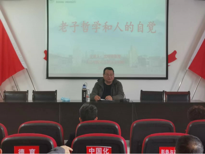 讲座结束后,参会老师提出了一些很有启发性的问题。其中张亚能副教授提到了他关于对东西方两大哲学体系的观察和思考;王卫华博士交流了有关老子对技术创新的态度、观点方面的问题;谢伏华博士也和沈教授交流了与老子思想相关的不同时空下道德的普适性的问题等。讨论现场的学术氛围十分热烈,充满了深厚的人文关怀。