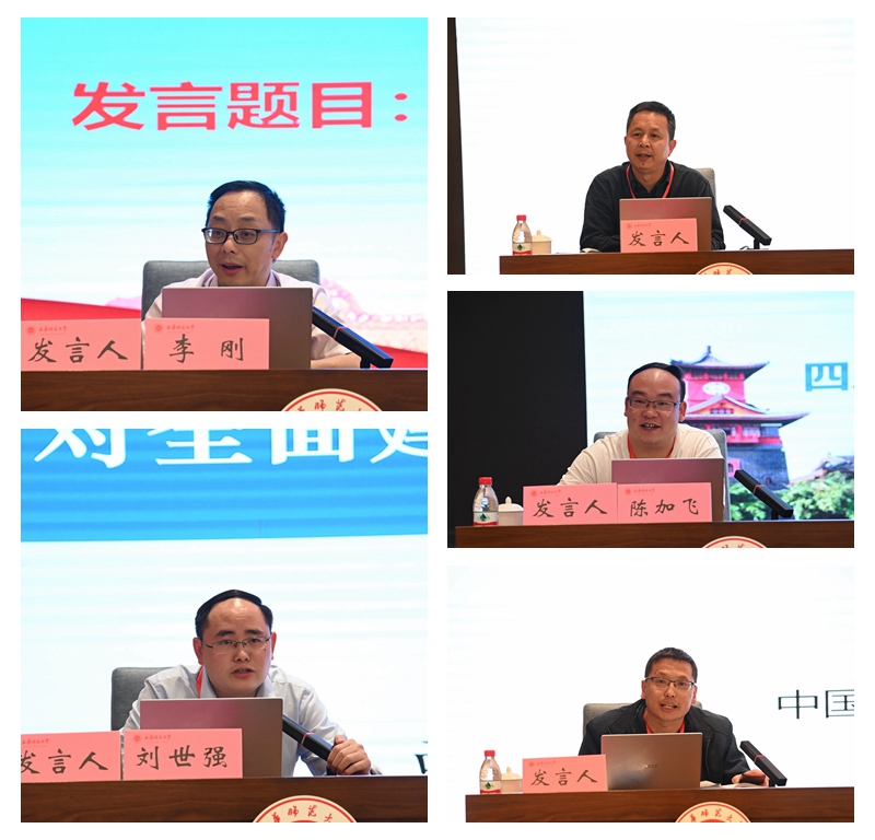 第二阶段交流发言由西华师范大学yl6809永利官网集团副院长王小蓉主持。四川省委党校yl6809永利官网集团院长、教授李刚,西南财经大学yl6809永利官网集团副院长、教授刘世强,yl6809永利集团社会系统学研究中心主任、教授冷树青,四川大学yl6809永利官网集团支部书记、副教授陈加飞,中国人民大学yl6809永利官网集团博士研究生张春海相继围绕《党史本体论视域下当代中国的马克思主义研究向度》《对全面建设社会主义现代化的理解》《习近平新时代中国特色社会主义思想研究的系统范式》《“战”“抠”“磨”“黏”“恒”——马克思主义理论学科研究生成长的“五个法宝”》《七大党章视域下中国共产党的初心和使命》作了交流发言。