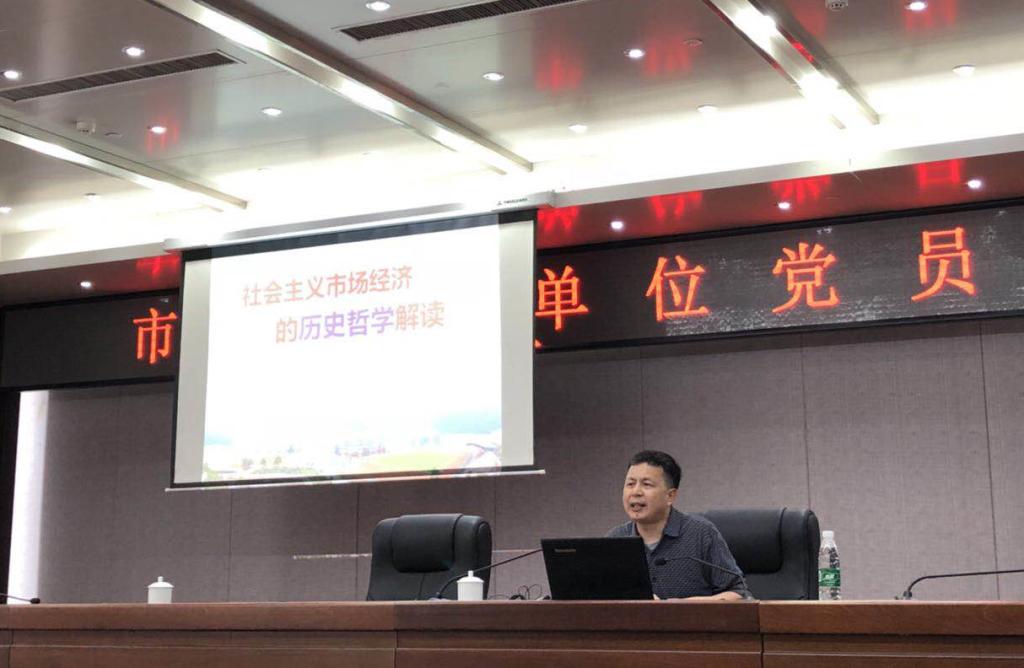 2018年4月19日,社会系统学研究中心主任冷树青教授应邀在九江市市直机关做社会主义市场经济历史哲学解读的党员学习讲座。讲座由市直机关肖副书记主持。