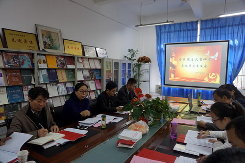魏副书记指出,十九大报告博大精深,内容丰富。为把宣讲党的十九大精神推向深入,提出了五点指导意见:一是学通。要在学深、悟透上下功夫,认真学习领悟十九大精神实质,全面准确地宣传党的十九大精神。二是讲好。要认真研究,把握节奏。既要系统讲、全面讲,又要深入讲、专题讲,把宣讲工作不断引向深入。三是研透。要准确把握十九大报告的精神内核,找准切入点,研究出成果。四是快进。要快速地把十九大精神融入学术研究、学科建设、课程内容、培训教材和学习读本,落实好“五进”要求,贯彻教育教学的各个环节。五是造势。要精心策划,营造学习宣传贯彻党的十九大精神的浓厚氛围,提升宣传的质量与效果,抓好落实各项工作。要坚持联系理论创新、联系受众的关切、联系思想困惑和联系当下热点,坚持问题导向,释疑解惑。进一步增强宣教的吸引力和感染力。