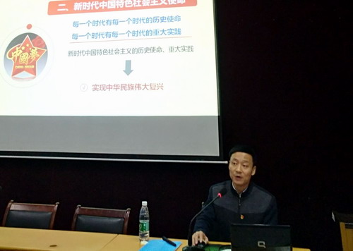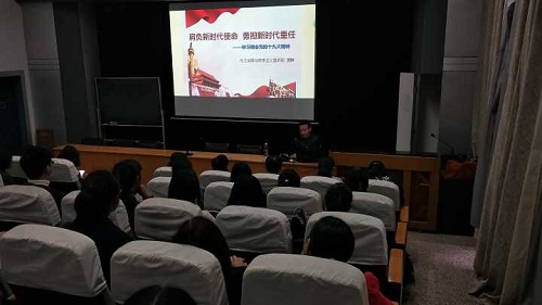 会上,黄群教授以《肩负新时代使命,勇担新时代重任》为主题展开了此次宣讲。黄教授从十九大的主题、意义、报告的内容,中国共产党的历史性成就和伟大变革等角度带领大家深入学习了党的十九大精神,并从新时代、新使命、新思想、新担当四个方面进行了深刻的解读。他表示要贯彻落实十九大精神应将个人命运与国家的前途和命运结合起来,并强调作为教育工作者,更要以身作则,担当起学生成长道上引路人的责任,为推动教育的内涵式发展贡献出自己的一份力量。