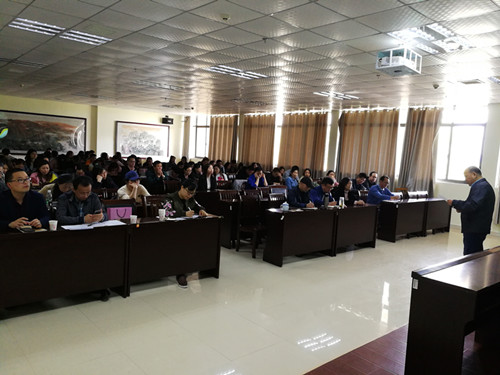 在听取完报告后,王春生代表艺术学院师生对李教授的精彩宣讲表示感谢!同时,他指出用习近平新时代中国特色社会主义思想铸魂育人,是新时代高校的根本遵循和指导原则。作为高校教师,我们一定要坚持不懈地用习近平新时代中国特色社会主义思想来武装头脑,切实做到“政治要强、情怀要深、思维要新、视野要广、自律要严、人格要正。”在教书育人实践中,我们要坚持以习近平总书记重要讲话精神为指导,努力做到“三个结合”:一是坚持学习科学理论与拓展专业素养相结合,二是坚持课堂知识传授与思想政治引领相结合,二是坚持专业知识学习与社会实践考察相结合。通过“三个结合”,实现“三位一体”的教与学,把价值引领的政治立场向大学生明确地展示出来,使同学们化知识为德行,化德行为信仰,永远跟党走,拥抱新时代,成为又红又专的一代新人,为中华民族伟大复兴而努力奋斗!