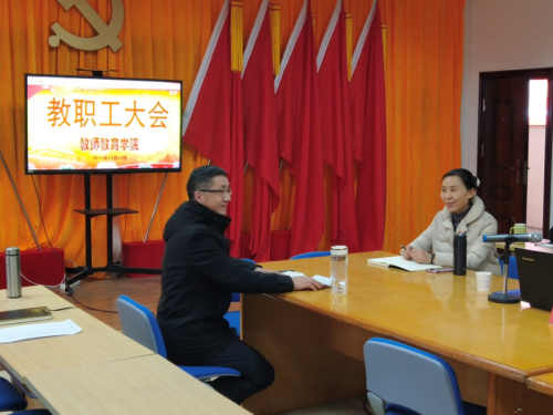 报告会结束后,学院召开了教职工大会。丁文林书记就我院领导工作分工、期末工作安排、绩效考核方案的实施、新专业建设准备等工作进行了部署。