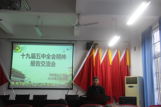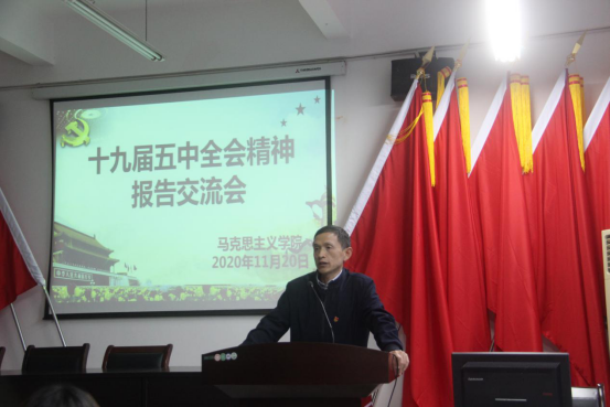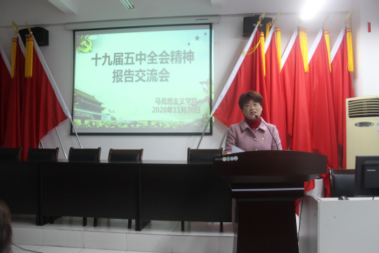 11月20日下午,yl6809永利官网集团学习贯彻十九届五中全会精神辅导报告会在香远楼212会议室举行。学院党委班子成员及全体教师参加了报告会。会议由党委副书记李雪主持。