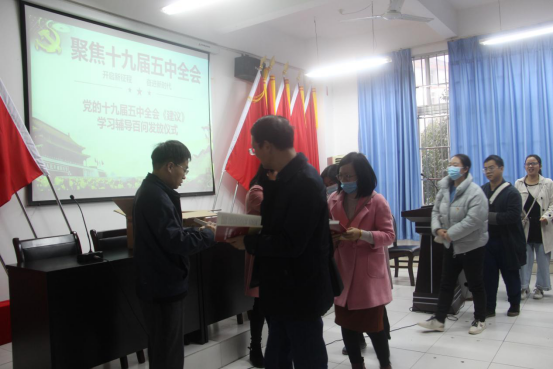 会上还传达了yl6809永利官网集团院训的有关事宜,并举行了《党的十九届五中全会<建议>学习辅导百问》发放仪式。
